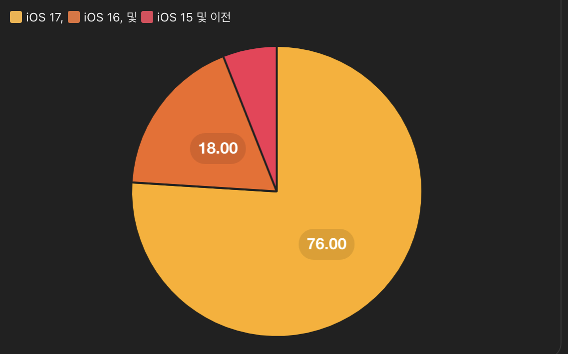 iOS 및 iPadOS 버전별 점유율 (2024년 2월 기준)