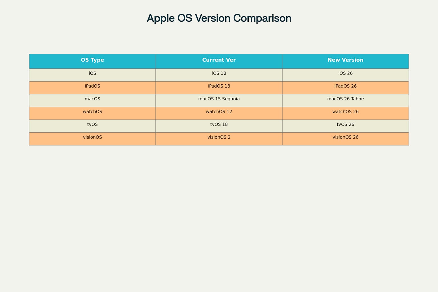 순차적 번호에서 연도 기반 통일로 이번 변화로 인해 iOS는 19가 아닌 26으로, macOS는 16이 아닌 26으로 명명됩니다 .