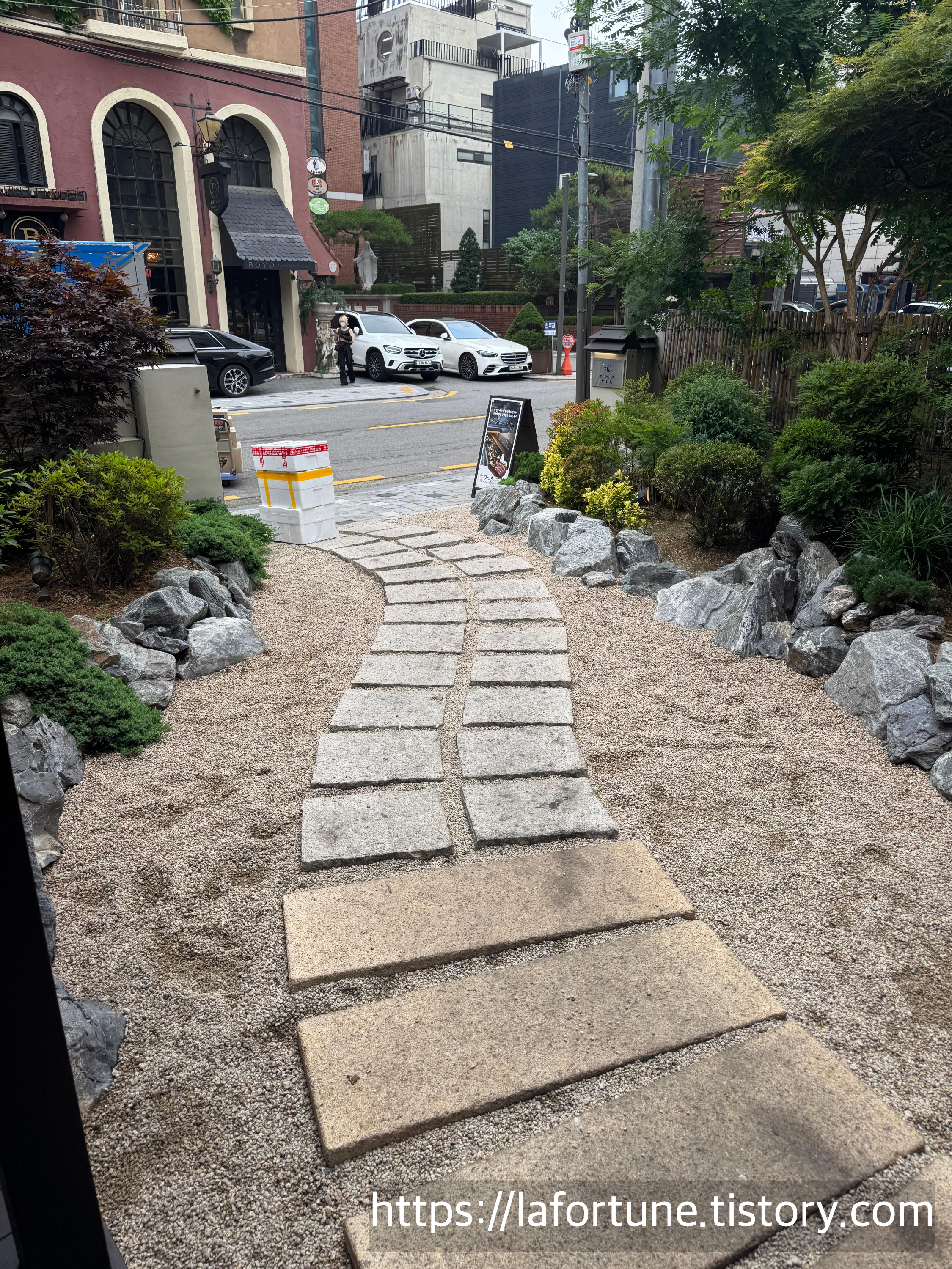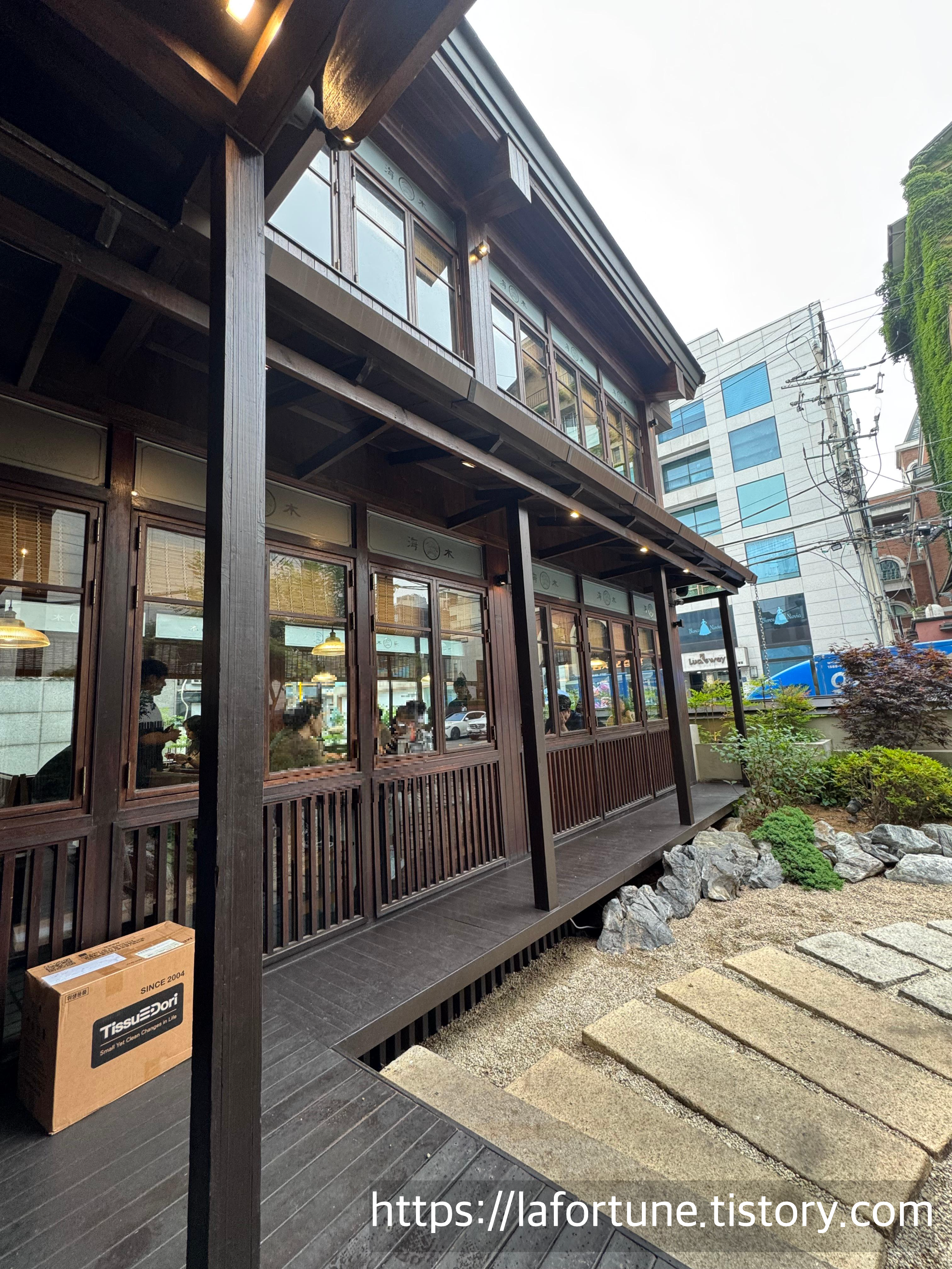 논현동에 위치한 해목은 외관부터가 정통 일본 가옥을 연상케 하는 모습이었습니다. 전체적으로 나무를 활용한 건축물이 눈에 띄었고, 입구에서부터 일본 전통 정원의 느낌을 물씬 풍기더라고요.