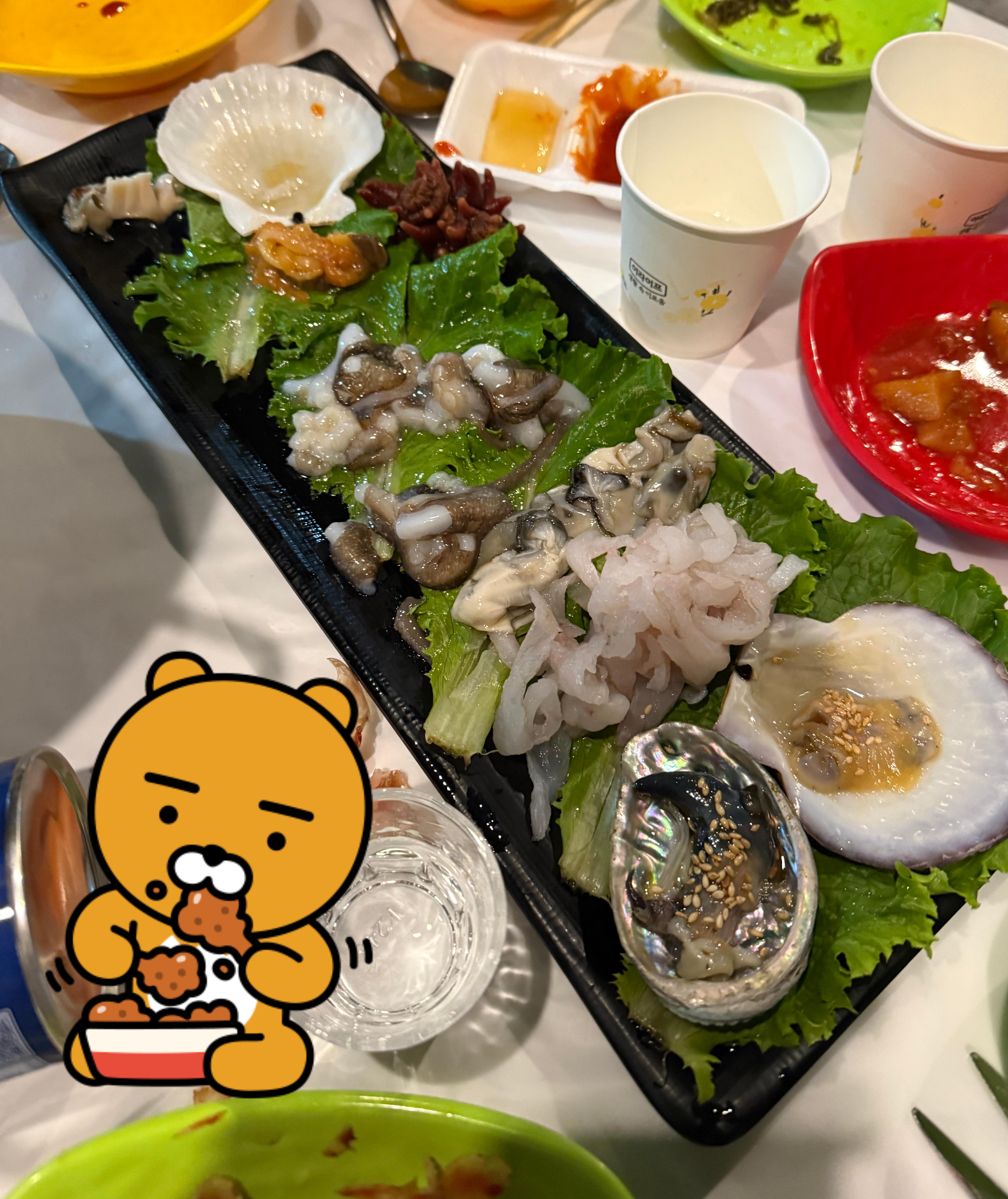 무엇보다 해산물이 정말 신선했어요. 먹느라 정신없다가 “아차!” 싶어서 뒤늦게 사진을 찍었는데도, 그 정도로 회가 깔끔하고 맛있었습니다. 아이도 거부감 없이 엄청 잘 먹어서 더 기분 좋았고요.