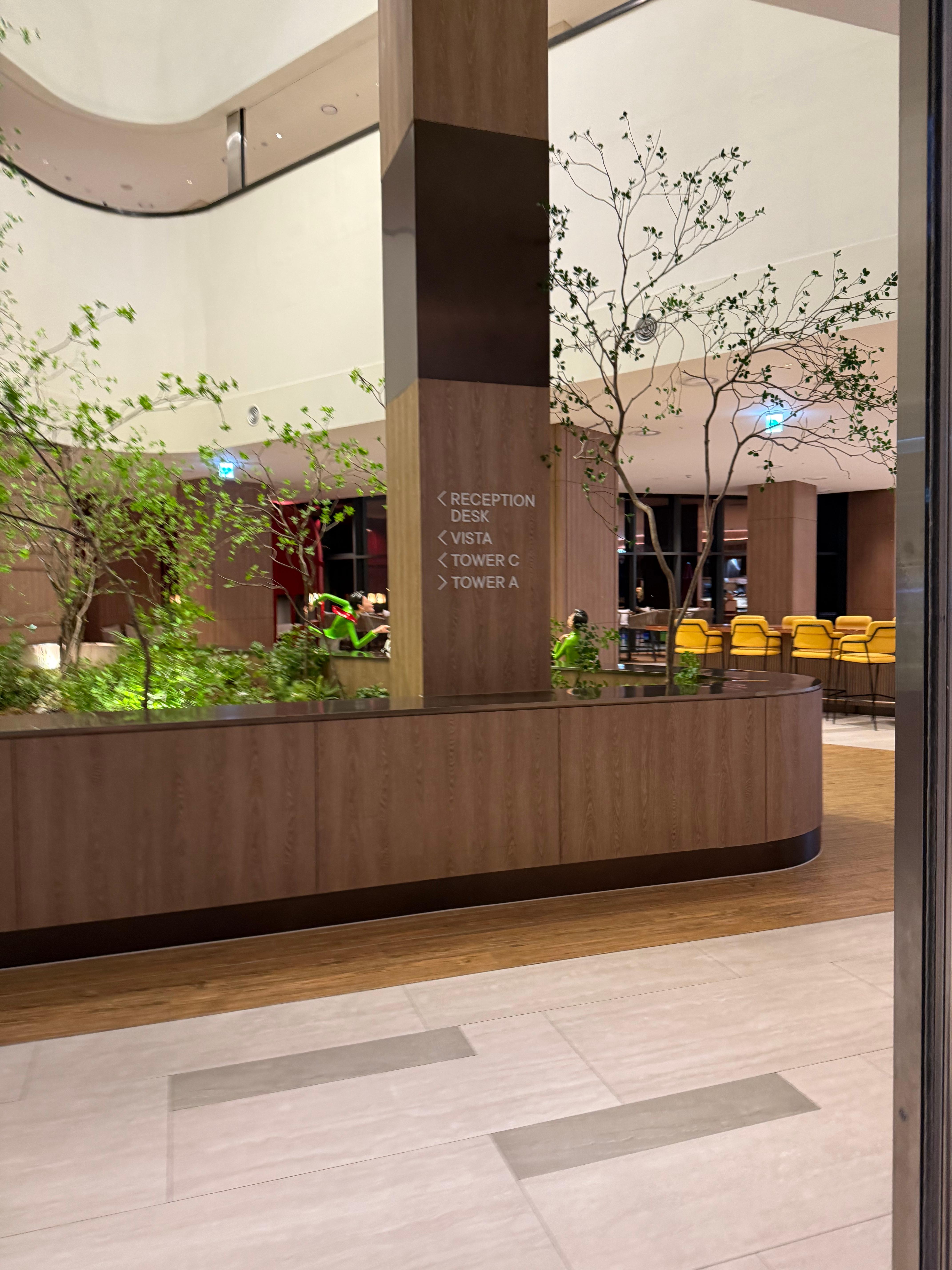 조명이 켜지니 낮에 보던 청량함과는 또 다른, 은은하고 고급스러운 무드가 흐르더라고요. 밤공기는 차분하고 건물은 반짝이니 분위기가 너무 좋아서, 시장 가기 전인데도 여기서 한참 서성이며 인증샷 한 컷 찰칵! 남겨주었답니다.